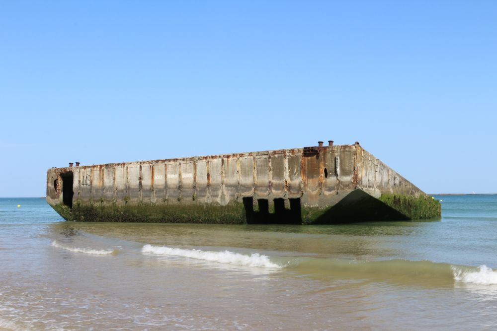 In Arromanches is nog een deel te zien van de voormalige Mulberry haven die is aangelegd door...